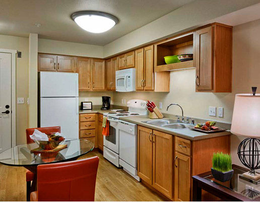 Three-story age restricted apartment building for seniors. Features large community space, pool & spa, theater room, crafts & woodworking spaces, fitness room, community vegetable garden, community courtyard, on-site storage lockers, games & billiards room, adult lounge/bar and barber salon. The 120-unit community is a mix of 500 SF studios, 600 SF 1-bedroom and 800 SF 2-bedroom apartments. Private garage spaces offer additional storage and protected parking.